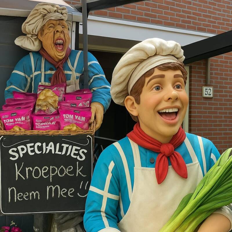 Uit het zwarte karretje (buiten bij droog weer) mag je extra producten meenemen.