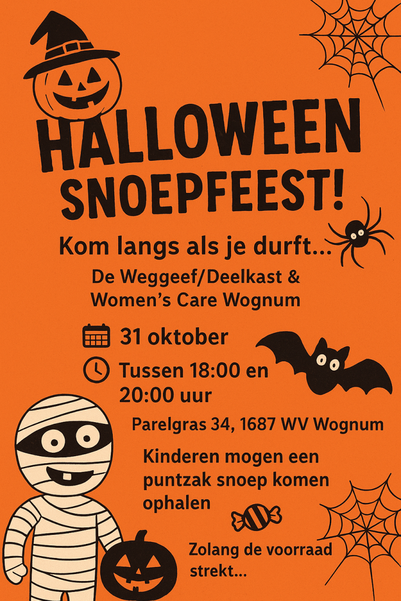 Aankomende vrijdag tussen 18:00 en 20:00 uur is het Halloween Snoepfeest! π¬πΈοΈ